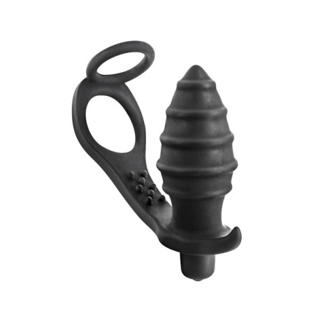 Plug anal vibrant avec anneau. Sextoy 3 en 1 pour plus de plaisir. Sa texture en silicone doux permet une insertion très agréable. Forme étudiée pour s'adapter à votre anatomie. Double Cockring extensible pour convenir à toutes les tailles de pénis. Longueur Totale 160 mm Diamètre 39 mm Silicone Utiliser avec lubrifiant à base d'eau Fonctionne avec 1 pile LR03 non inclus