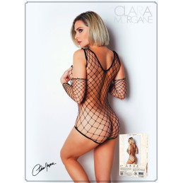Body en dentelle et micro résille avec ses liens au décolleté.Entre jambes et seins ouvert. Chainette amovible entre jambes.Jarretelles amovibles. Jarretières avec menottes amovibles.