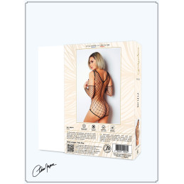 Body string très échancré en résille aux motifs Léopard avec ses manches longues qui laissent dévoiler les épaules. Attache au cou.