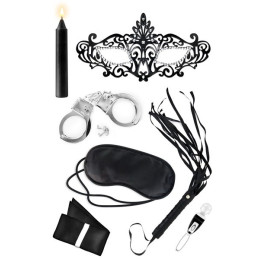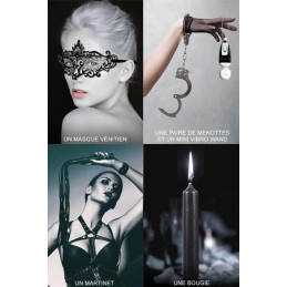 Un coffret très complet pour l'initiation aux jeux de plaisirs et soumission érotique. Coffret dédié à la tendance SM soft Il comprend : un Martinet une paire de menottes un loup Vénitien une bougie masque 2 bandeaux Un vibromasseur -