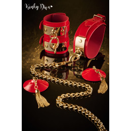 adorable ensemble en satin rouge et bande élastique noire orné d'un coeur en strass Collier et menottes relié par une chainette amovible avec mousquetons. ATTENTION: Toutes Les références de cette marque ont un délais complémentaire de livraison de 72 heures.