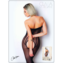 Bodystocking en résille avec ses motifs fleurs sur la partie haute formant un body sexy. Ouvert entre jambes.