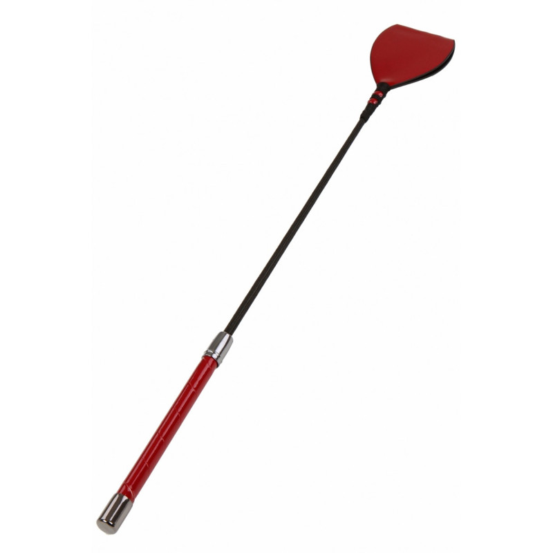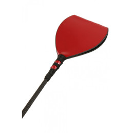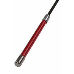 Osez les jeux du plaisir par la douleur avec ce petit fouet en cuir noir et rouge.