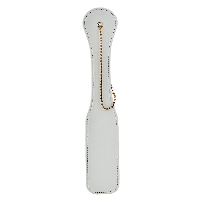 Tapette simili cuir et rivets dorés avec chainette dorée.
