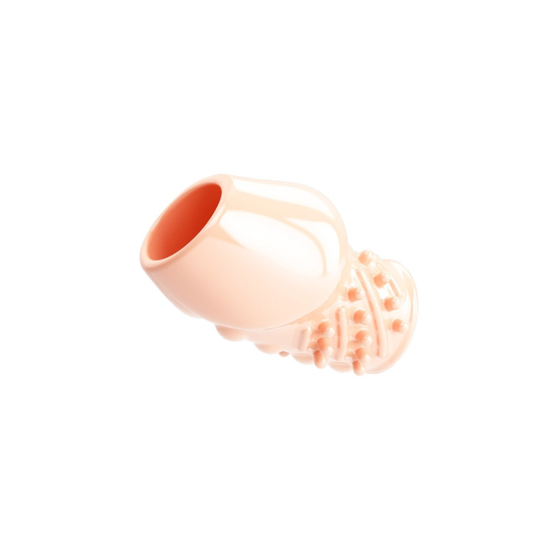 Cette gaine à pénis à reliefs se met sur le bout du pénis pour une pénétration stimulante.Ouverte au bout pour l'éjaculation.