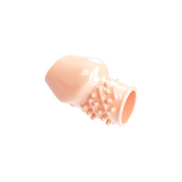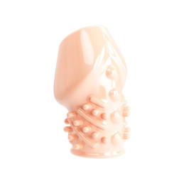 Cette gaine à pénis à reliefs et picots se met sur le bout du pénis pour une pénétration stimulante tout en donnant du volume au gland
