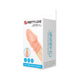 Cette gaine à pénis à reliefs se met sur le bout du pénis pour une pénétration stimulante.