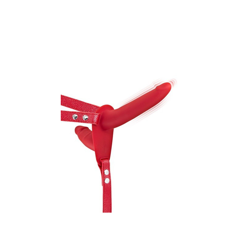 Osez le jeu du plaisir partagé avec se double gode ceinture vibrant en forme de pénis.Un gode entrant et l'autre de pénétration.Rechargeable USB.