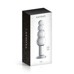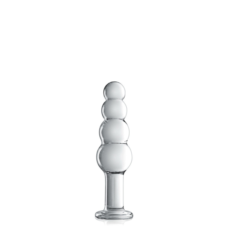 Plug Anal ou gode avec un gland marqué et corps perlé en verre incassable et hygiénique qui vous procurera une belle expérience de plaisir. Il pourra s'utiliser froid en le mettant au frigo ou chaud en le mettant dans l'eau chaude avant l'utilisation.