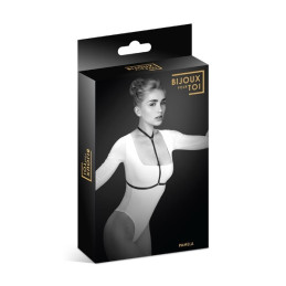 Harnais élastique pour mettre vos formes en valeur avec ou sans vêtements. Plusieurs attaches et réglages. Harnais de corps ou accessoire de mode. Matière élastique en polyester. Boîte en mm 175 x 100 x 30 - Poids total 45grs