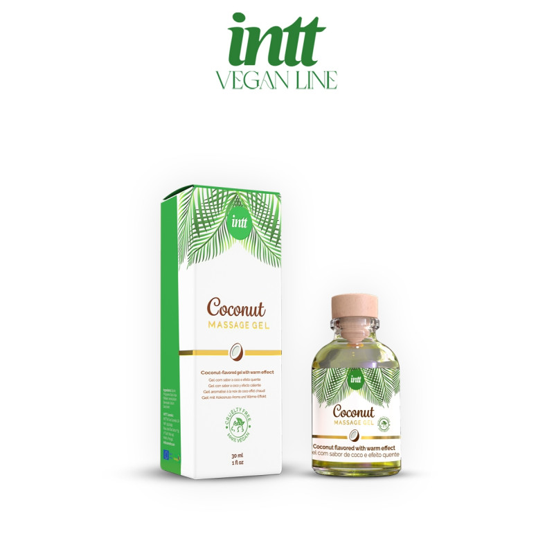 Gel de Massage à la Noix de Coco, embrassable au délicieux goût de noix de coco et au doux effet chauffant idéal à utiliser dans différents moments de plaisir comme le massage, le sexe oral ou pendant les rapports.Végan.