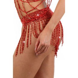 Ensemble rouge avec son top et sa mini jupe en large résille double. ATTENTION: Toutes Les références de cette marque ont un délais complémentaire de livraison de 72 heures.