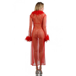 Un joli déshabillé en voile rouge avec ses plumes au col,bas de manches et en finition. ATTENTION: Toutes Les références de cette marque ont un délais complémentaire de livraison de 72 heures.