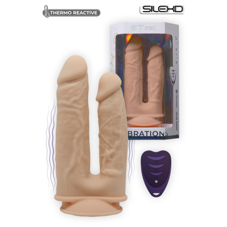 Double Gode ventouse chair vibrant à télécommande. Anal et vaginal avec 2 moteurs.