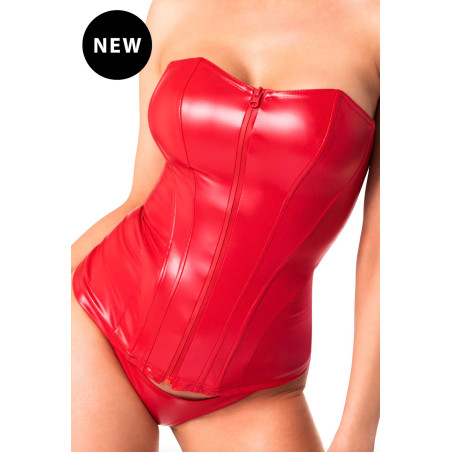 Très glamour corset en wetlook avec ses baleines semi rigides, une belle découpe aux hanches pour un galbe parfait et zip devant.