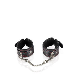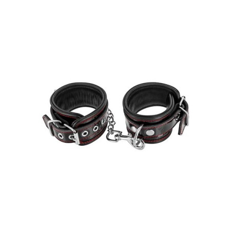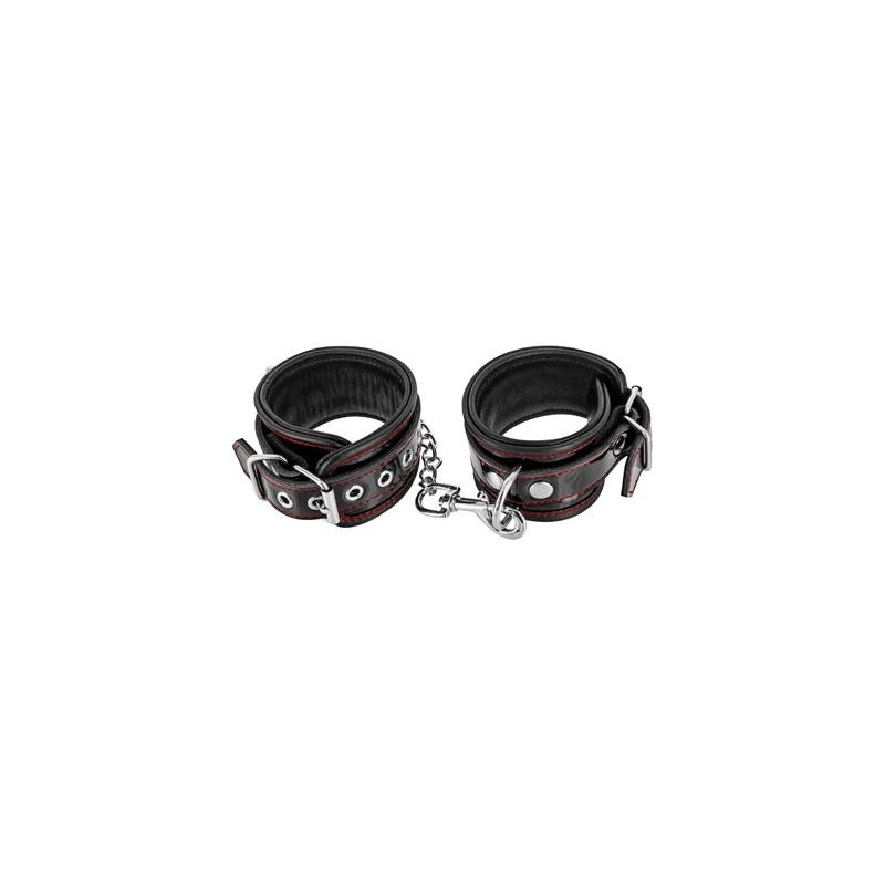 Menottes à surpiqures pour les chevilles avec un anneau doré et sa chaine avec deux mousquetons.