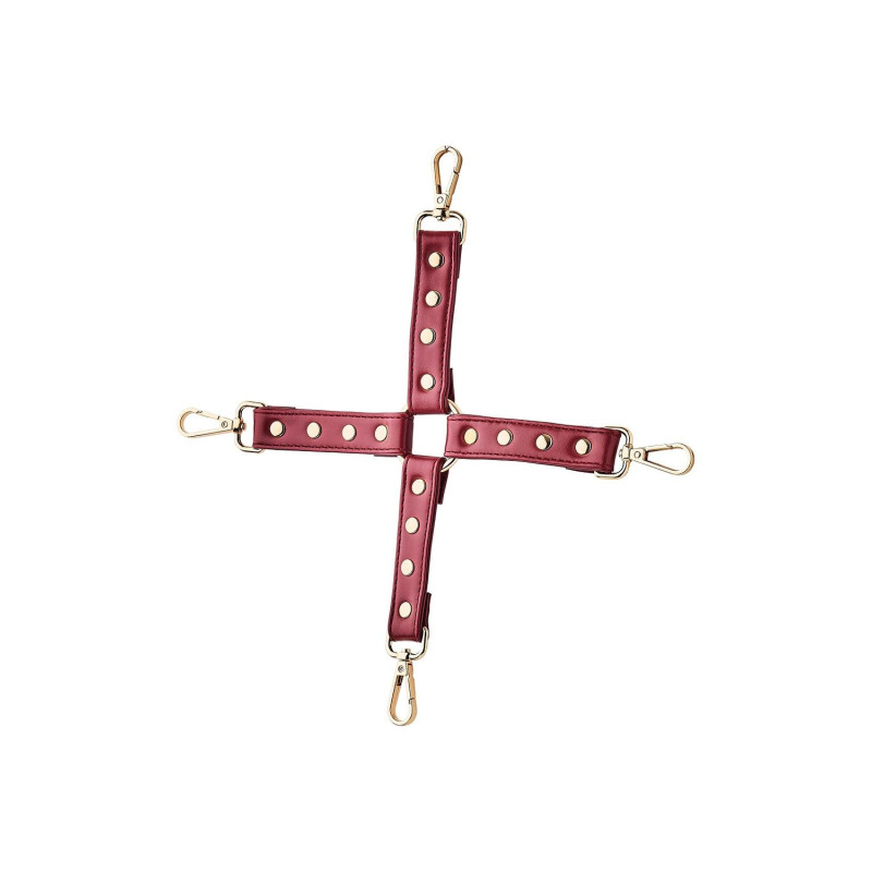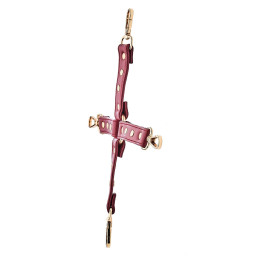 Sangle en croix simili cuir avec des mousquetons dorés pour y attacher vos menottes poignets et menottes chevilles..