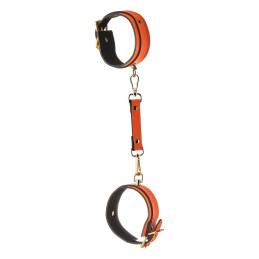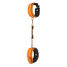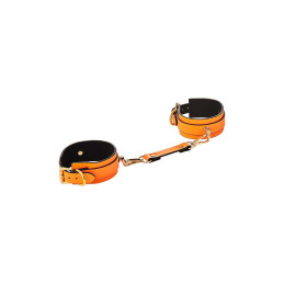 Très chic menottes chevilles phosphorescent orange en simili cuir et détails dorés