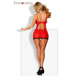Nuisette moulante en micro résille rouge avec son décolleté en dentelle et son joli dos nu. String inclus.