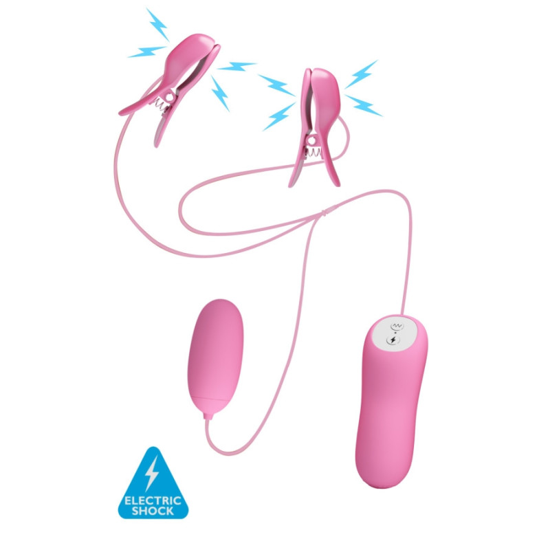 Oeuf vibrant relié à des pinces à tétons stimulantes par ondes électrique