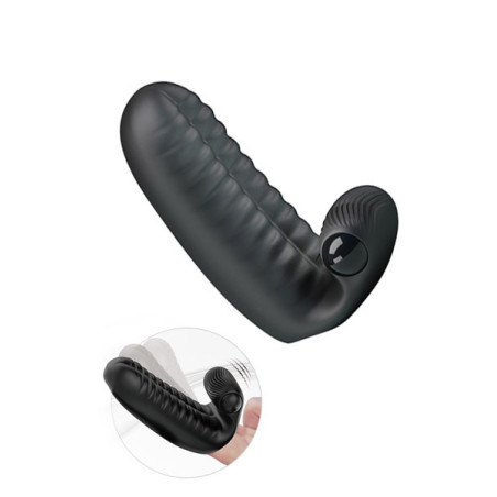 Extraordinaire petit jouet si facile à tenir et qui saura stimuler le clitoris et le vagin pour une explosion de plaisir. Il stimulera le clitoris tout en vous Pénétrant agréablement. Facile à tenir car il se place sur deux doigts. Son ergot est quip d'un mini oeuf vibrant pour apporter les vibrations. Oeuf vibrant amovible. Silicone souple et très doux. Sans Phtalate. 3 piles LR41 fourni Longueur 124mm Pénétrant 95mm Poids total 65grs