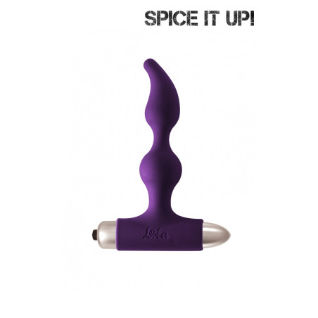 Ce Plug vibrant avec 10 intensités vous apportera une agréable stimulation avec ses deux boules et sa pointe ergonomique spécial prostate. Le bullet amovible sera un plus pour une stimulation du clitoris. Sa base permet également de le garder en place pendant vos rapports. Double stimulation des parois anales avec ce plug doux et flexible avec une pointe ergonomique spécial prostate. Bullet amovible à piles. 10 modes de vibrations Longueur totale 13. 1 cm Longueur insérable 11 cm - Diamètre max 2. 8 cm Bullet 9. 2 cm x 2 cm 1 Pile AAA non incluse Silicone