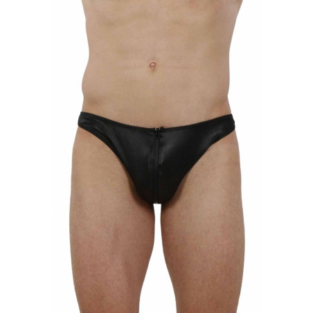 String Homme en Wetlook avec un zip devant. Réglable sur les cotés.