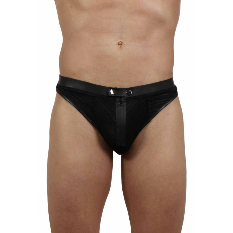 String Homme en Wetlook avec un zip devant. Réglable sur les cotés.