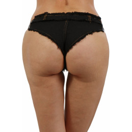 Sexy short échancré effet denim effiloché avec ses boutons devant et ses bandes noires élastiques imprimées "LOVE"