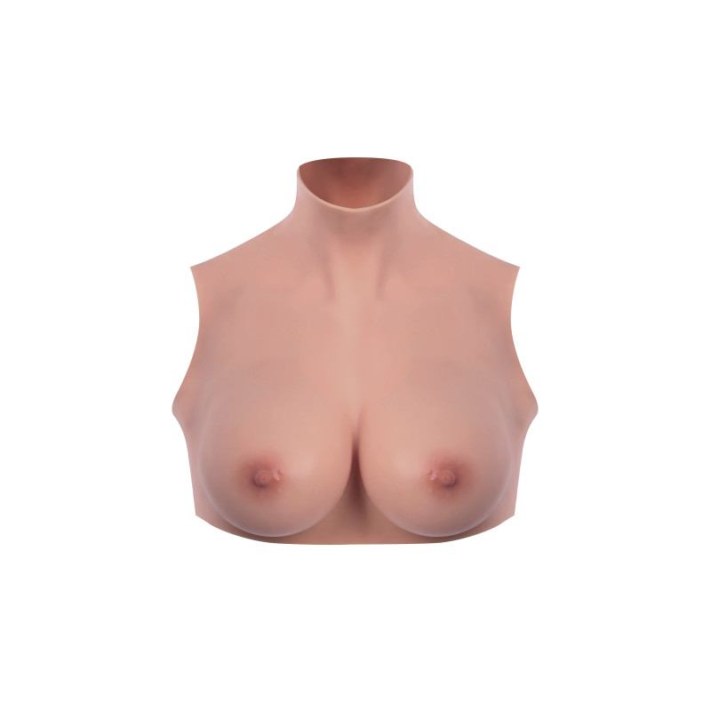 Buste faux seins qui monte jusqu'au cou.Couleur chair très claire.Silicone réaliste.