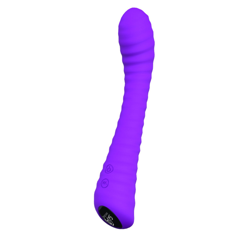 Un joli vibromasseur flexible annelé. Rechargeable avec 9 modes de vibrations.